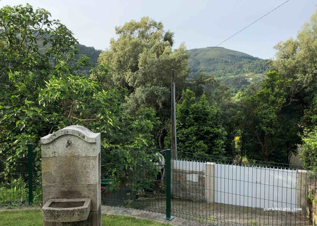 1 / 5Parking (plat) avec tables, eau potable, poubelles et barbecue. Séparé de la route principale bien qu'il y ait encore du bruit de la route. Toujours un endroit paisible avec beaucoup d'arbres fruitiers et un petit parc attenant. 100m du monastère et du bar local.