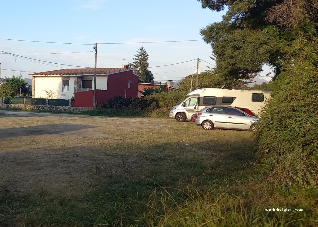 Parking au sol à proximité du Camping Bayona. Sans services ici mais avec tout très proche de la ville. Piste cyclable dans le même parking.