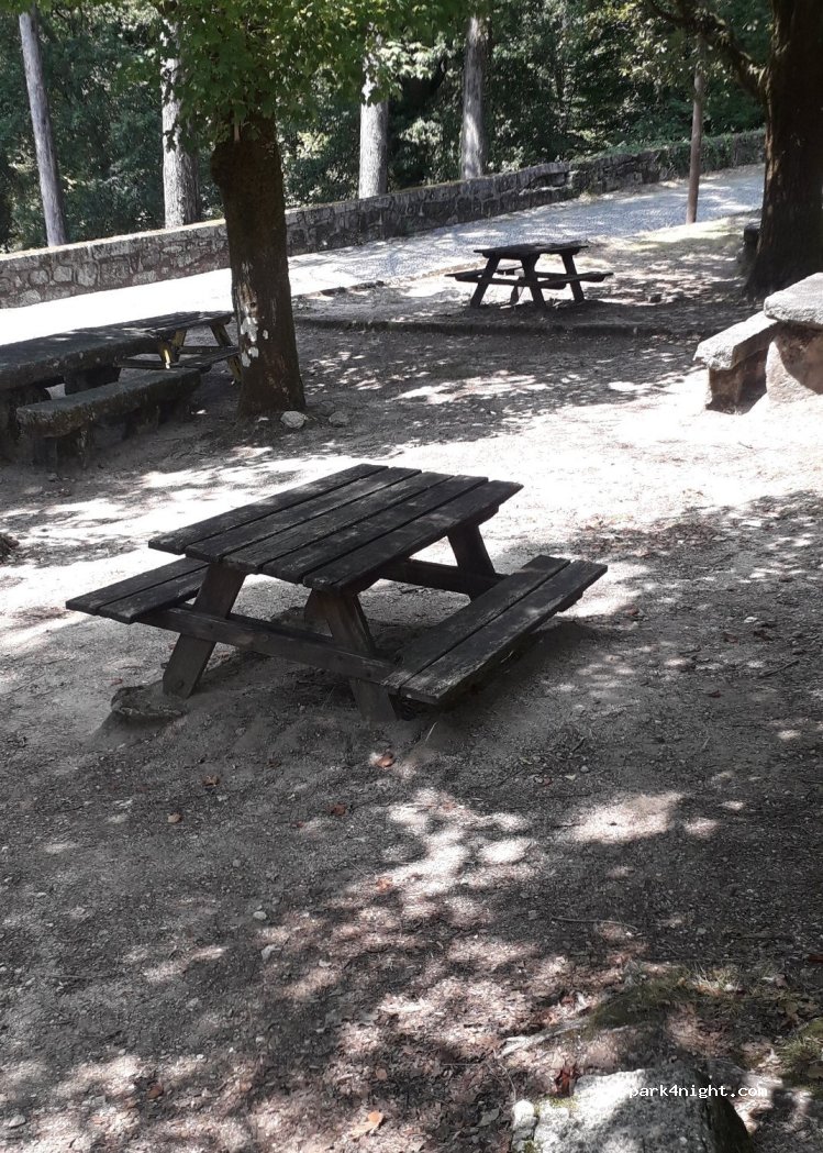 Aire de pique-nique ombragée avec de nombreuses tables en pierre et en bois. Attention difficile de se garer, route en lacets et pavés.