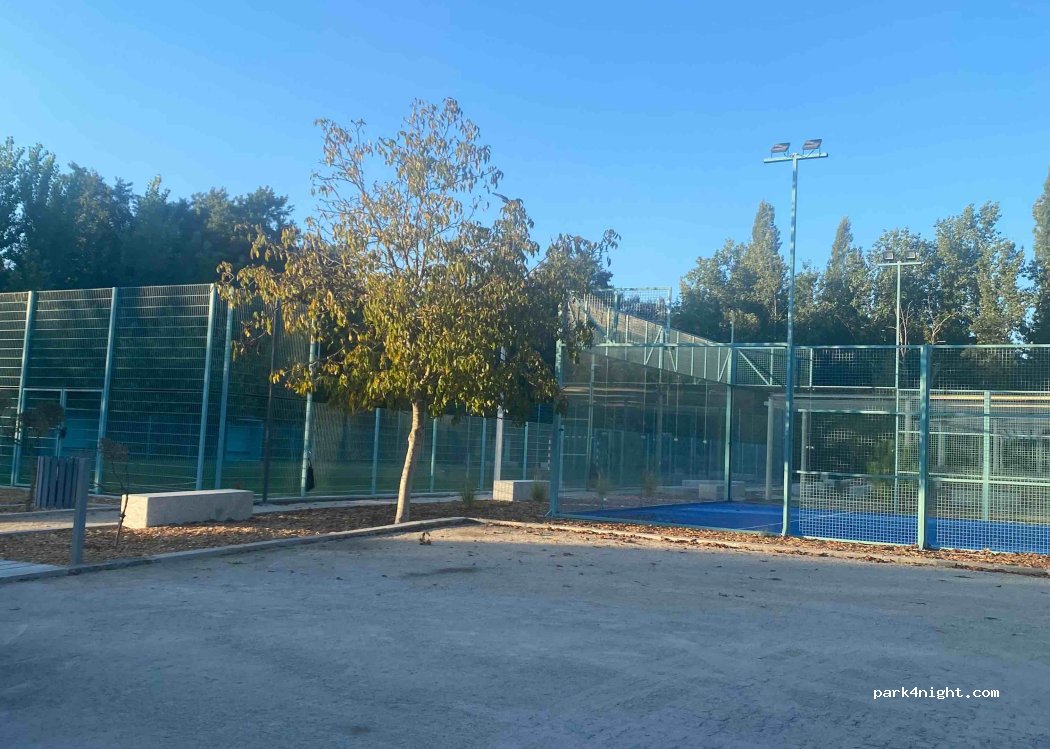 1 / 5Stationnement gratuit pour camping-cars près d'un parc public. Terrain de football et de padel à proximité. Tables disponibles.