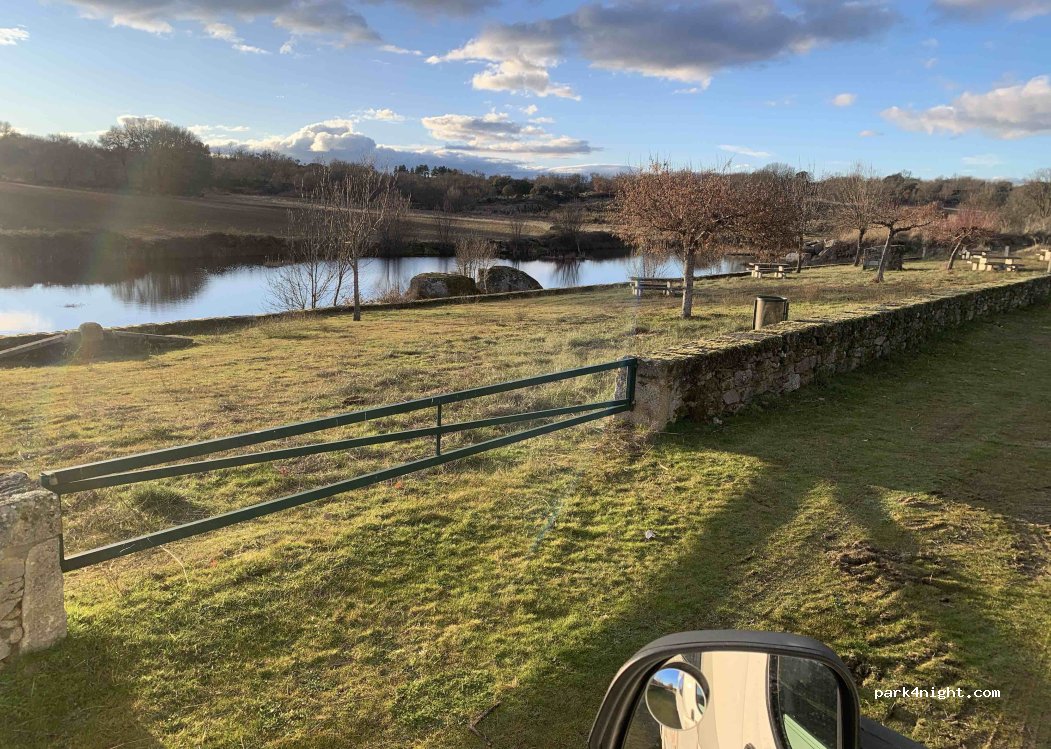 1 / 2Aire de pique-nique (7 tables) en bordure de route et de lagune. Sans ombre ; emplacement pour barbecue.