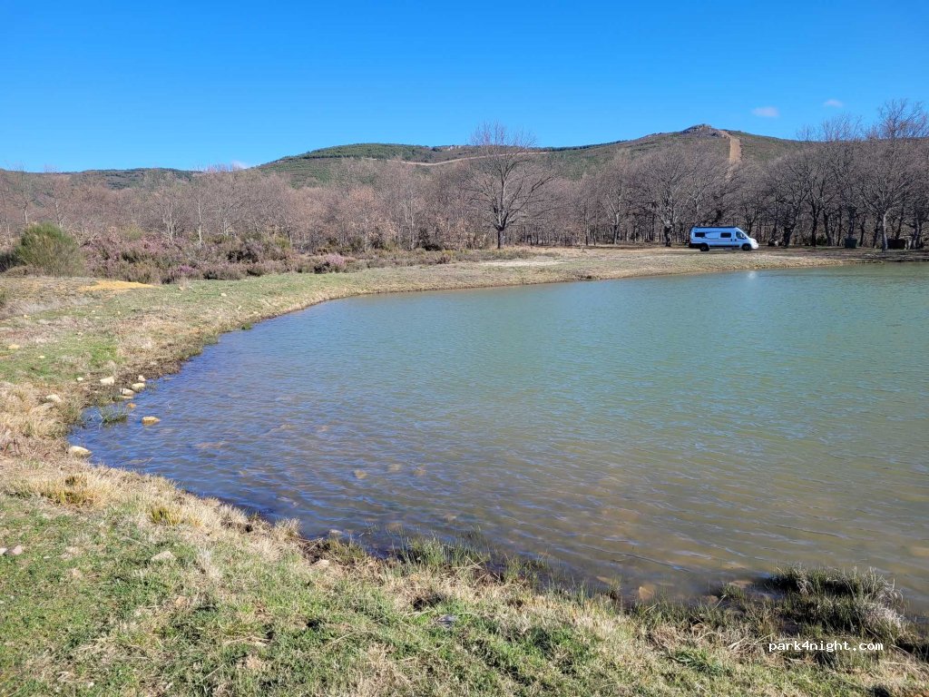 1 / 3à l'écart de la route terrain aménagé auprès d'un étang. Plusieurs tables de pique-nique, barbecue, fontaine. beaucoup d'espace et terrain plat. très tranquille ce début avril, passage de quelques chasseurs matinaux avec chiens ...