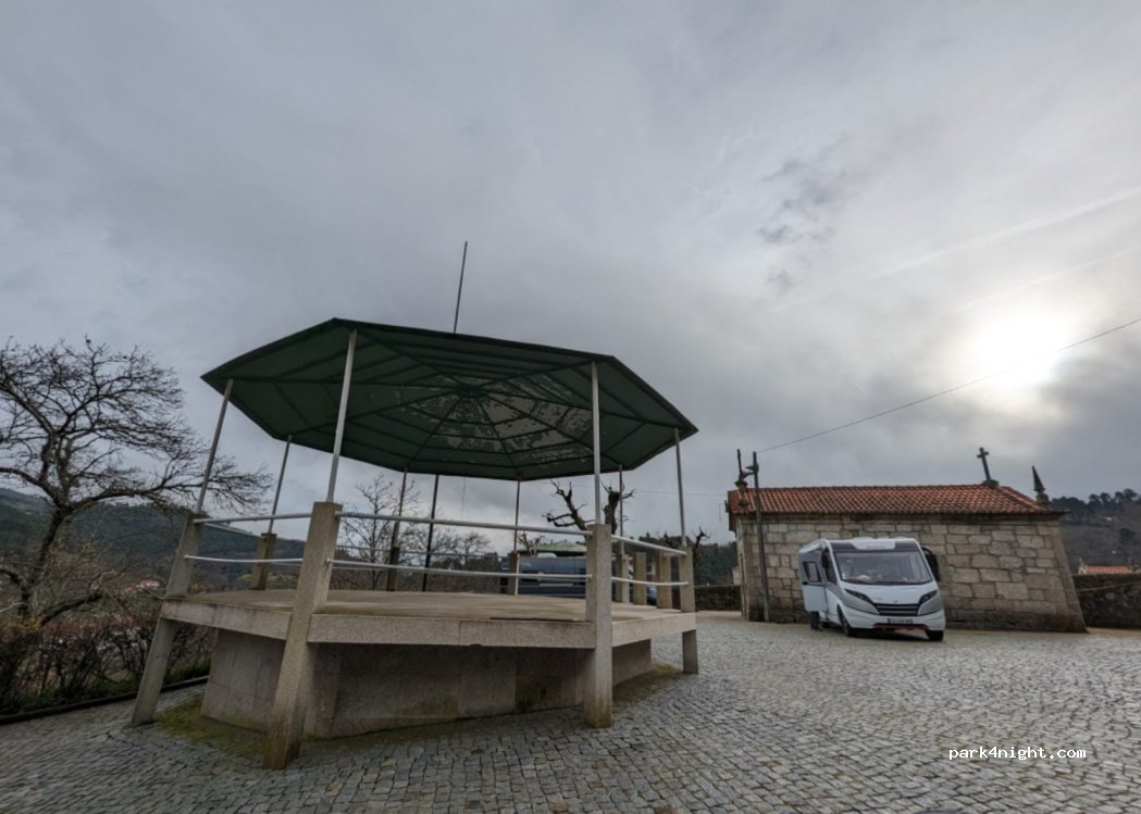 1 / 2Parking du cimetière de Lazarim. Il comporte des espaces plats et d'autres légèrement inclinés. Je regardais le Lazarim Entrudo et il était plein de camping-cars, environ 12. En descendant la rue du cimetière, à environ 100 mètres, il y a une fontaine.