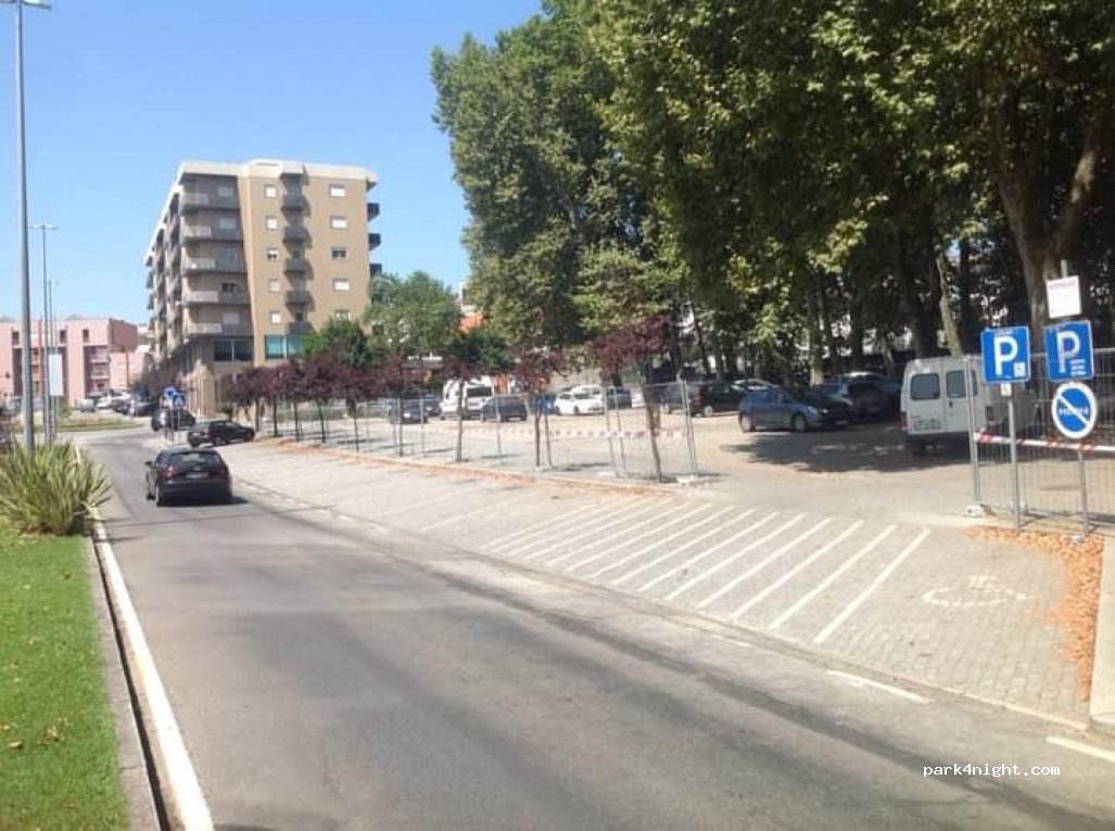 1 / 4Uniquement Véhicules <3500 kg Parking pavé et éclairé (50x200 mtr) dans le centre de Lousada. En face piscine municipale et marché frais. Légèrement incliné et proche d'une route à circulation. Beaucoup d'arbres hauts!