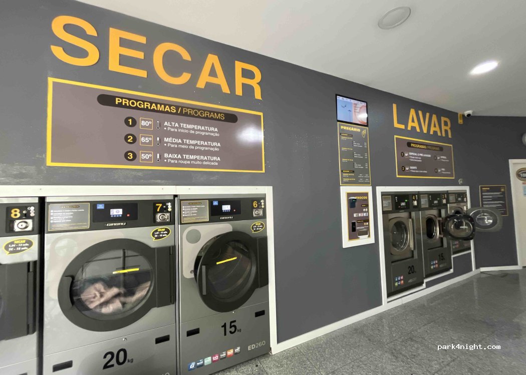 Laverie automatique, à côté d’un bar. Parking à proximité. Paiement uniquement en espèces.