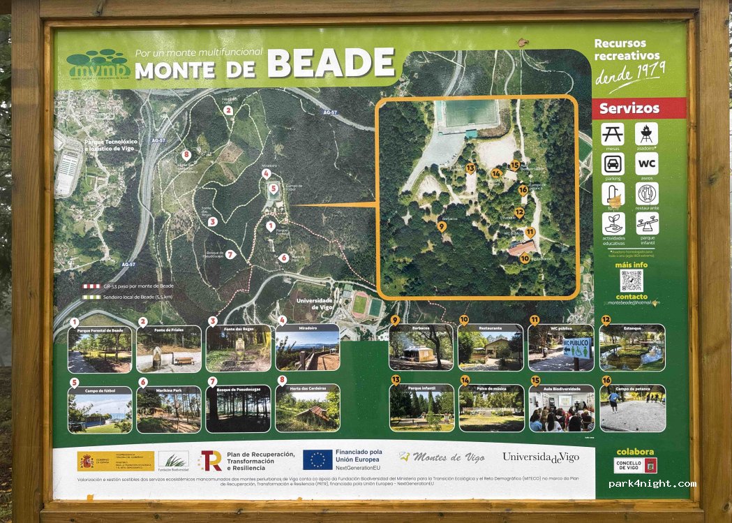 1 / 3Un endroit idéal, calme et paisible pour passer la nuit. Vous pourrez vous promener dans les bois à côté du Parc d'Aventure. À proximité, un belvédère offre une vue magnifique sur Vigo et ses environs.