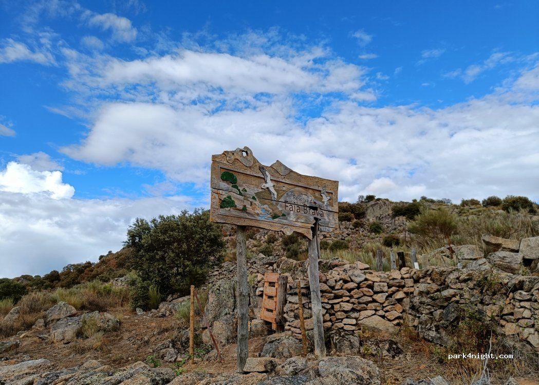 Parking de l'entrée sud de la réserve naturelle Faia Brava. Au bord d'une route avec presque pas de circulation. Terrain plat pouvant accueillir 2 à 3 vans. Aucun service mais accès direct à la réserve où l'on peut voir des aigles royaux et différents vautours. 2 parcours facile, un de 2 km et l'autre de 10km. Magnifiques balades en pleine nature où il est possible de voir des chevaux et des vaches sauvages.