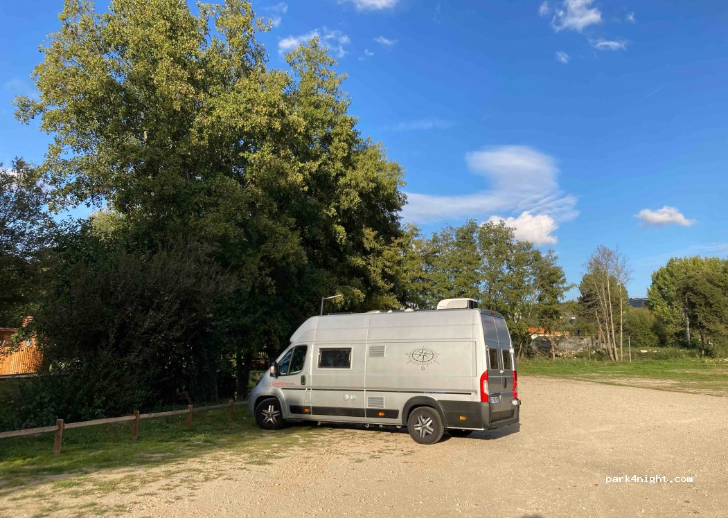 1 / 4Parking de Parc de loisirs, accessible en périodes hors saison. Assez calme la nuit mais pas dans les heures payées car il y a tout près d'une entreprise de BTP avec des engins bruillants. Sinon une partie du parc est accessible et pourra vous faire une pause verte pour vos animaux.