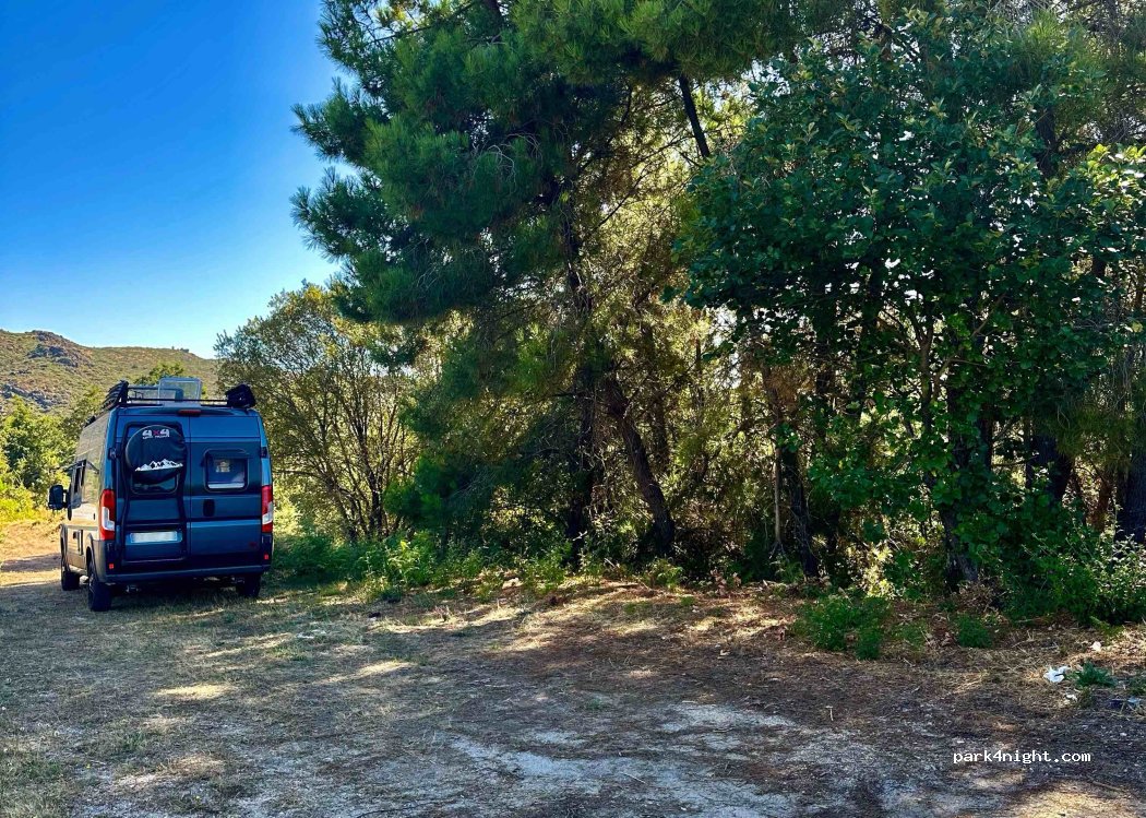 Petit parking le long de la route bien ombragé le matin, pour une pose déjeuner. Route peu passante.