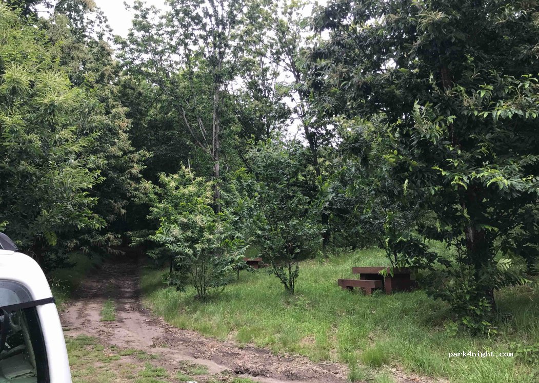 1 / 3Au milieu de la verdure au bout du chemin, il y a une place de parking pour 2 campeurs maximum. Surface relativement plane, accessibilité correcte. Il y a un point d'eau potable au début du chemin et un espace barbecue sur le site même.