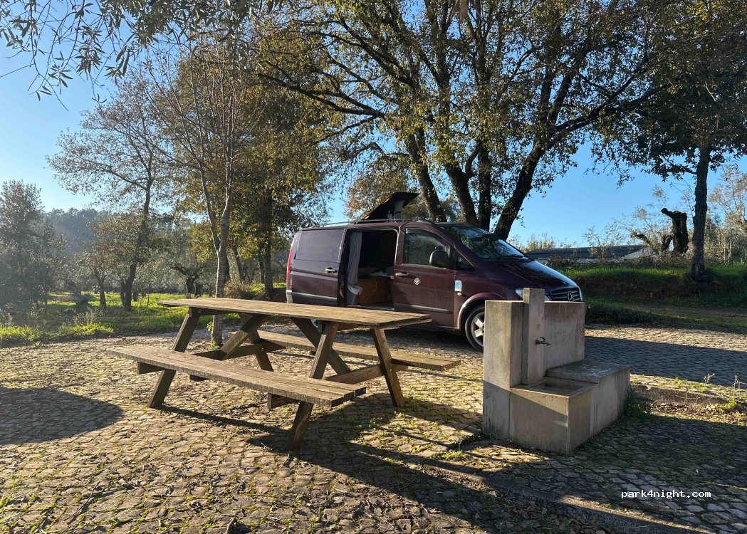 Petit endroit serein, proche de l'autoroute, équipé d'une fontaine à eau, de tables et de bancs. Il y a de la place pour 1 ou 2 camionnettes, mais c'est hors des sentiers battus, donc il y a de fortes chances qu'il soit vide. C'est un endroit idéal pour faire une pause, éventuellement passer une nuit aussi, je le recommande vivement.