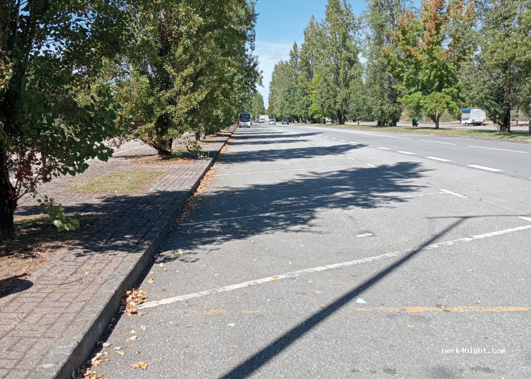 Parking ombragé, beaucoup de circulation, je ne sais pas ce que c'est que de dormir.
