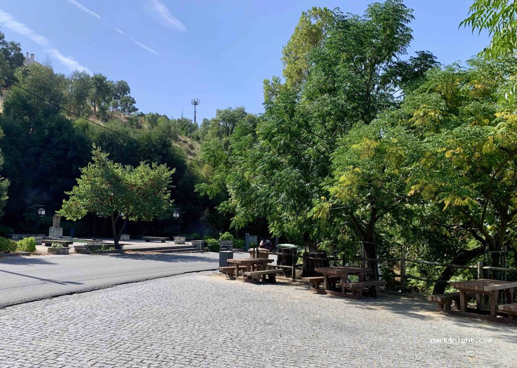 1 / 2Point de vue sur la ville de Portalegre, avec trois tables de pique-nique ombragées. Point d'eau non disponible.