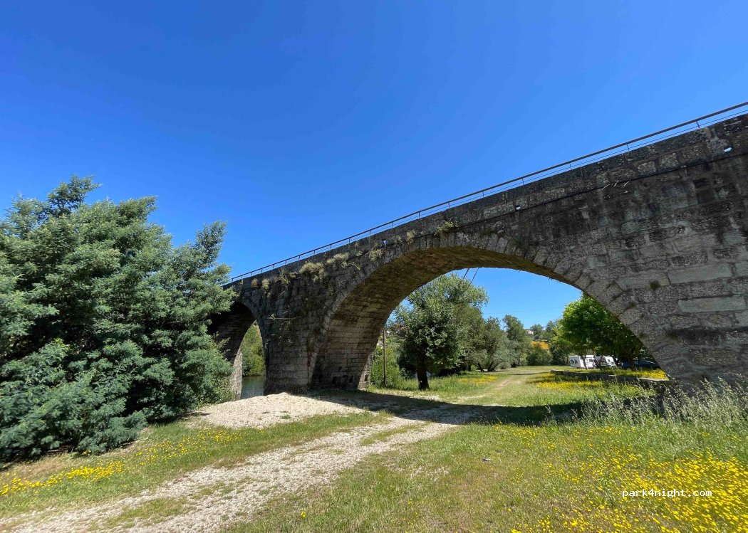 1 / 2La zone de repos Ferreiros do Dão est située près de la rivière Dão, à côté d'un pont romain. Grands ombres d'arbres, cafétéria, aire de jeux, aire de camping, avec barbecue, eau et douches