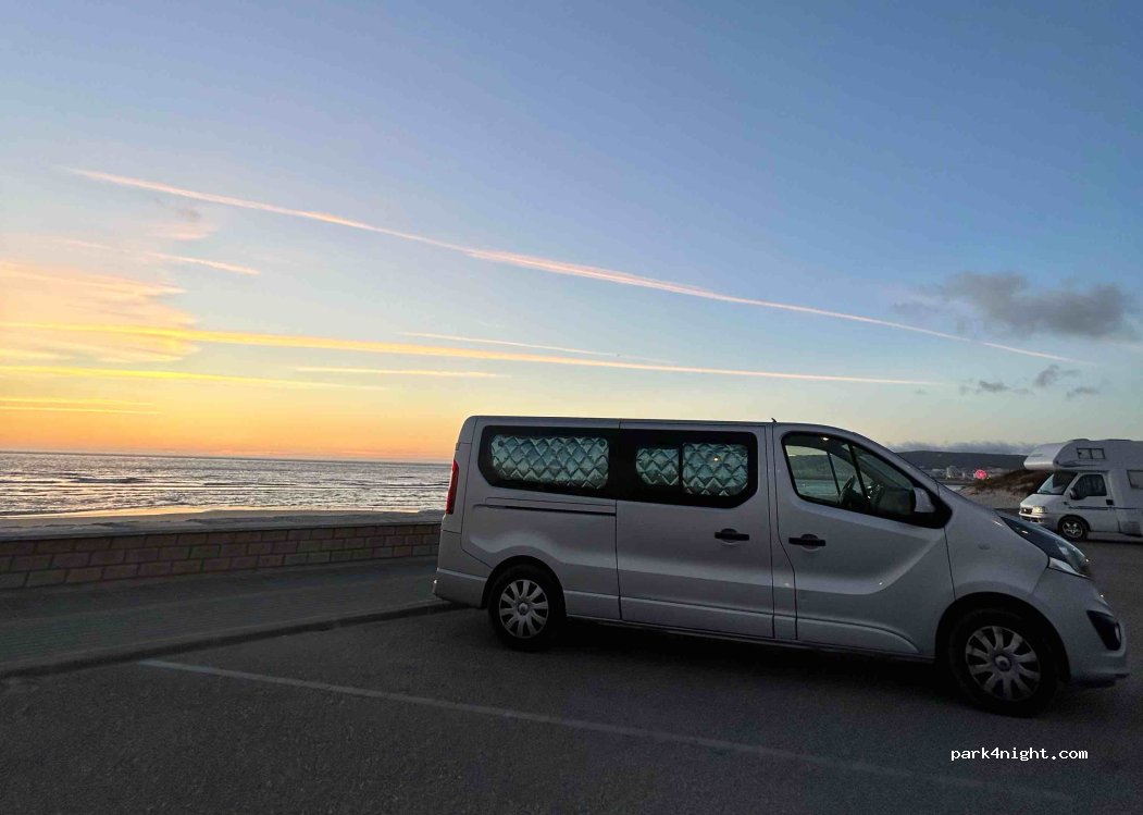 1 / 5Parking à côté de la plage. Il y a beaucoup d'espace et c'est calme la nuit, mais il y a du mouvement le matin. A proximité, vous pourrez vous rendre dans un bar de plage (ouvert de 11h à 20h) pour recharger vos téléphones. À l'extérieur de ce même bar, il y a des toilettes et des douches publiques. L'endroit est idéal pour surfer le matin, car il y a une école très proche
