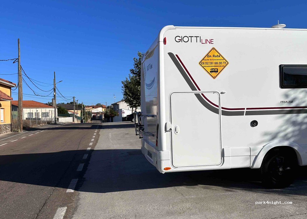 1 / 3Fuentes de Oñoro, une ville proche de la frontière portugaise (en 5 minutes vous êtes au Portugal) Il y a une station essence, un bar qui ferme à 2h du matin, un Carrefour. Le parking très calme, de jour comme de nuit. Avec ombre. Belles vues vertes. Les voisins très sympathiques. Ils nous ont dit qu'ils allaient bientôt ouvrir un parking pour camping-cars.