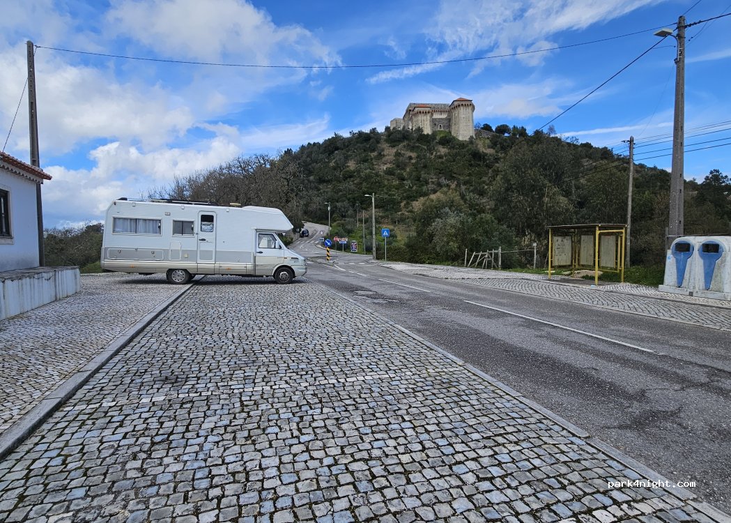 Parking devant une chapelle 3 places possible avec un 7m. Accès correct. Il faut marcher sur une pente assez raide le long de la route pour accéder au château.