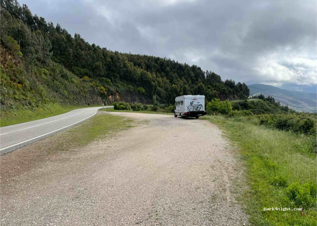 1 / 3Une petite zone de gravier à côté de la route avec une vue imprenable sur la vallée et le réservoir.