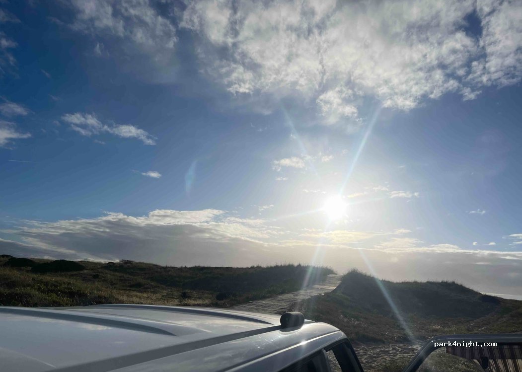 1 / 3Beau parking derrière une dune. Route de gravier d'environ 3 km. Plage de sable sans fin à environ 50 mètres.