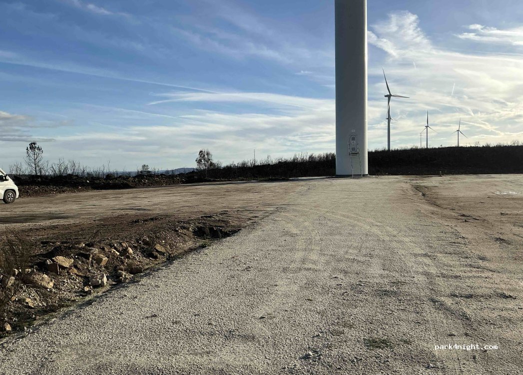 1 / 2Lieu plutôt isolé dans un parc Éolien, à côté d’une éolienne. Accès via chemin gravier, largement accessible pour un van de 6m. Plusieurs sites possibles (à côté des éoliennes)