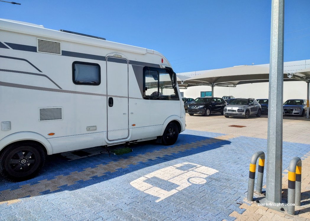 1 / 2Deux emplacements signalés par un panneau pour les campeurs où il est permis de séjourner jour et nuit sans limite horaire. Les emplacements sont sur un parking de supermarché. Il n'y a pas de service mais les campeurs peuvent s'y garer gratuitement.