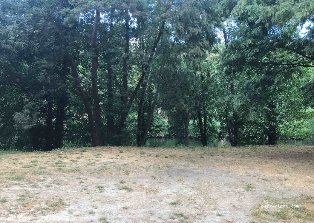 1 / 4En continuant le chemin en terre (praticable car désherbé et nettoyé), au bord de la rivière, nous arrivons rapidement à une zone déboisée avec 3 ou 4 places maxi.