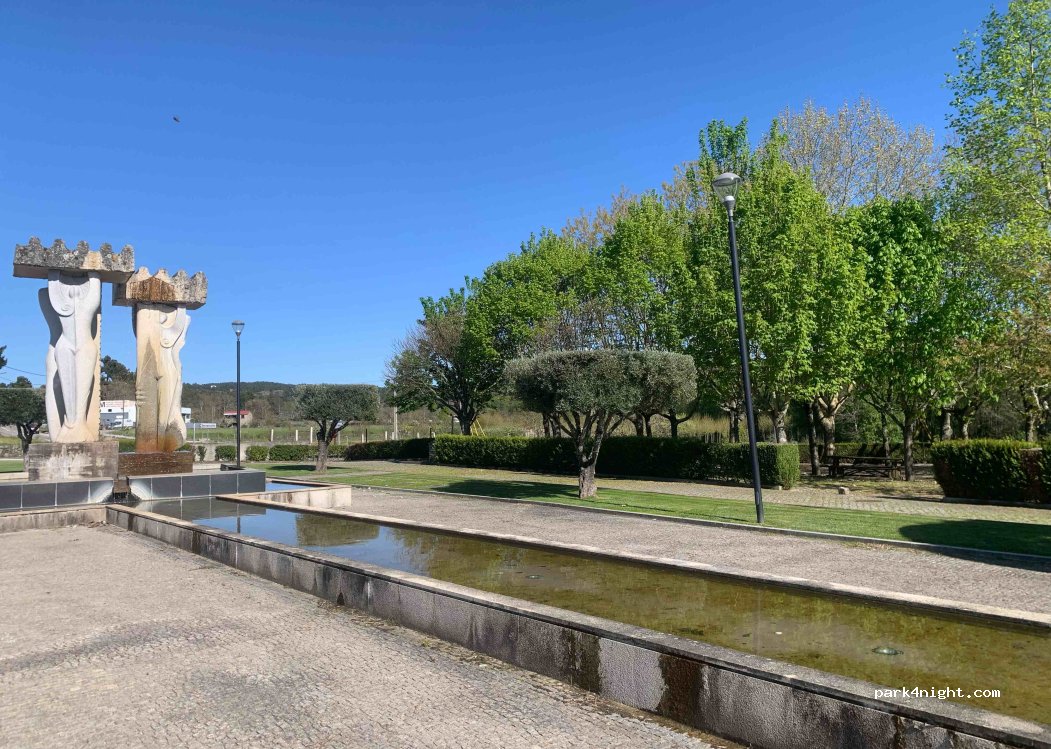 1 / 4Aire de pique-nique (4 tables en bois) sous les arbres, à côté de la sculpture et du passage piéton de la N229, au nord de la vieille ville historique de Sernancela (900 ans). Un parking public, plat et éclairé, se trouve à 80 m. Hormis un passage piéton, la circulation est généralement faible la nuit.