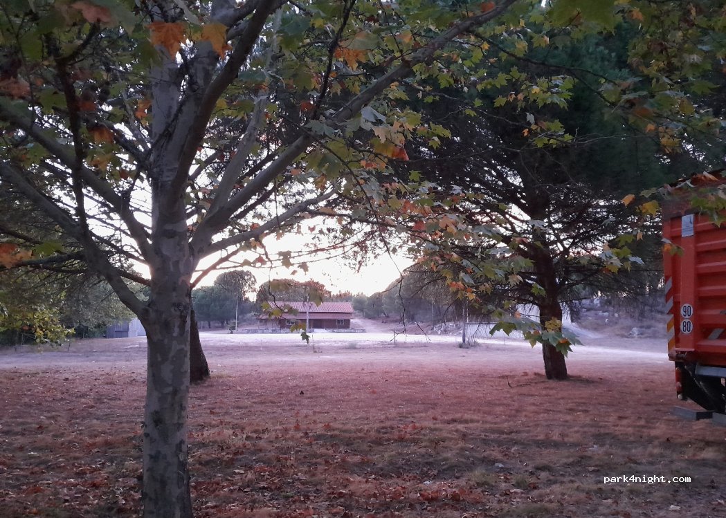 1 / 3Parking ombragé, plat, à côté d'un bâtiment qui doit être utilisé occasionnellement pour des manifestations. personne lors de notre passage. accès par route goudronnée puis chemin blanc, proche A25 mais calme. bien pour une nuit.