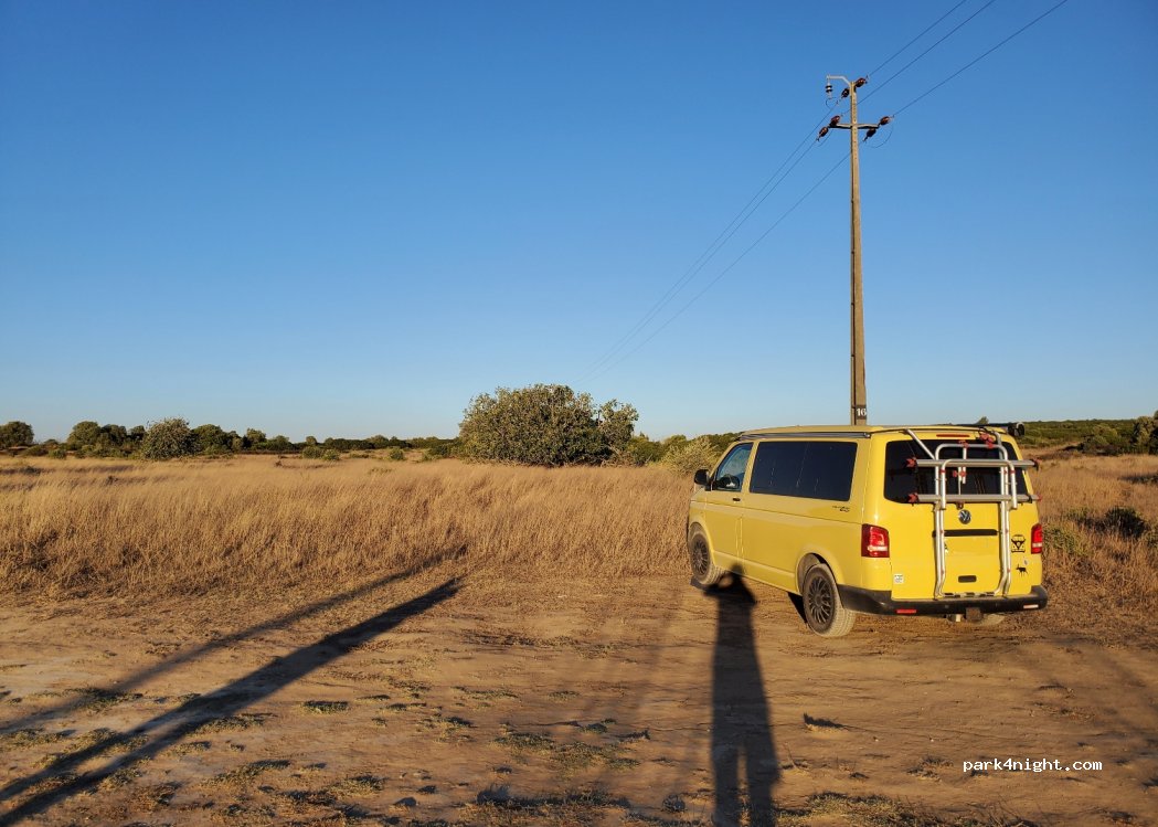 1 / 3Espace plat pour un ou deux vans au bord d'une piste de terre très praticable, à proximité d'un petit village. Avantage principal : éviter le vent qui sévit sur les côtes.