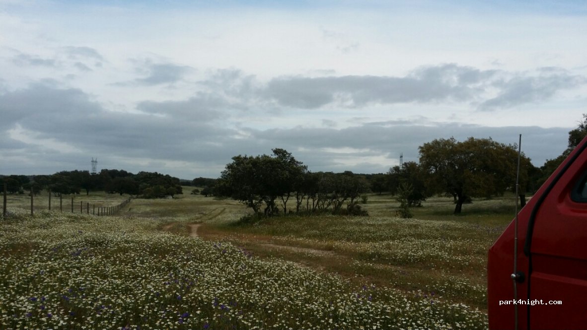 1 / 4Pleine nature zone de chasse touristique, attention au châssis bas, piste en terre mais carrossable sans avoir un 4×4, village pas loin, calme assuré. Zone très large, même au départ du chemin, pour se caler. Nous avons continué un peu plus loin pour l'isolement si non au rond point sur la droite de la piste un terrain de tennis apparemment abandonné. Bon ce matin, nous avons eu la visite du berger.Très gentil mais nous a dit qu'ici c'est le parc à vache. On pouvait se garer mais avant la barrière (ouverte hier soir). Si non une nuit très très calme.