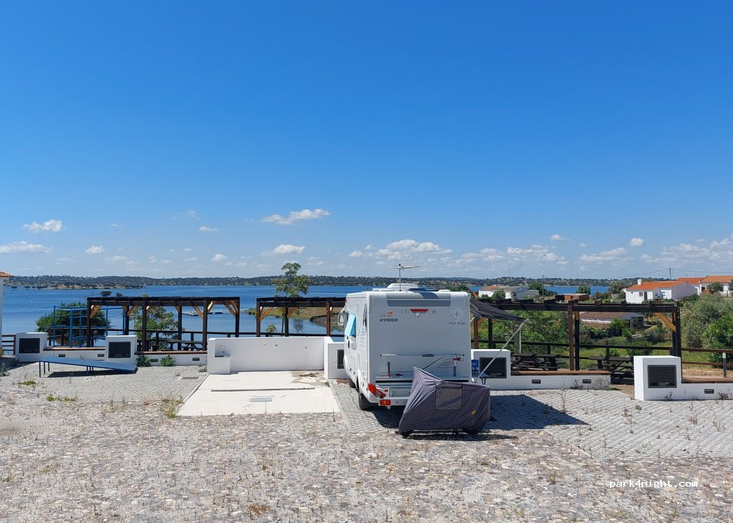 1 / 5Aire de camping-cars avec 5 emplacements étroits et plats, sans ombre, avec tous les services nécessaires. Pour l'électricité, branchez-vous à la prise située en bas du boîtier noir. Septembre 2025 : si la barrière est fermée, appelez le numéro de portable indiqué sur le pilier d'entrée et précisez que vous êtes à « Aldeia da Estrela » ; même chose à la sortie. Vue sur le barrage d'Alqueva. Plusieurs tables de pique-nique en bois face au barrage. Toilettes publiques à 50 m (après l'aire de jeux) et douches froides extérieures avec vue sur le lac. Endroit agréable, calme et propre. Marchez 10 m (1 km) jusqu'au sommet ouest du village, où se trouve une table de pique-nique ombragée par un chêne-liège offrant un magnifique panorama sur le réservoir et les îlots.