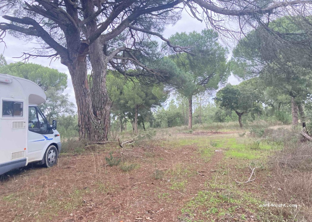 Excellent spot dans une région assez difficile pour se poser la nuit. Facile d’accès, sol stabilisé et assez plat, à l’ombre sous de grands pins, possibilité d’être à plusieurs. Aucune circulation sur route la nuit et très faible la journée. Promenades possibles chats et chiens.