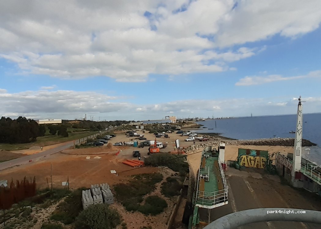 1 / 2Grand parking en terre battue au niveau du quai des bateaux et des ferries abandonnés. Il y a beaucoup d'activité pendant la journée avec la mise à l'eau des bateaux de pêche. La rue adjacente est bruyante.