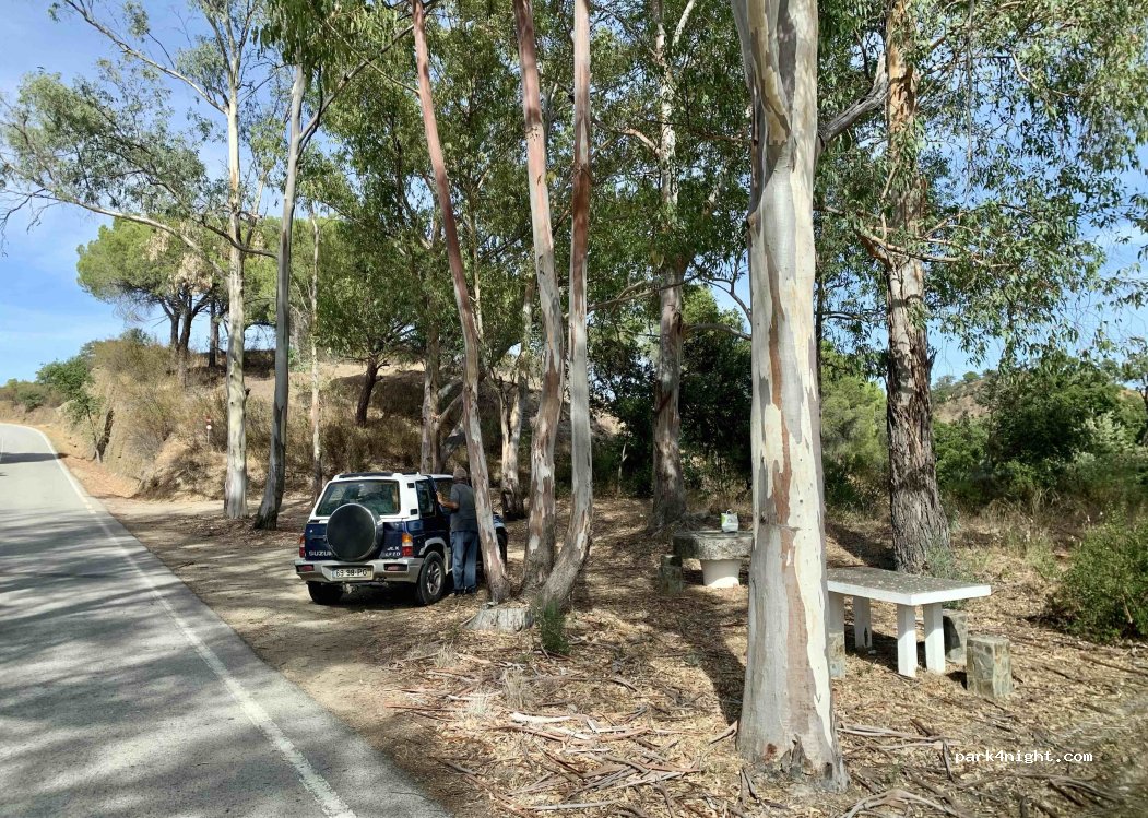 1 / 2Aire de repos à côté de la route et d'une rivière. Des tables et des bacs sont disponibles. Vous pouvez voir des tortues dans la rivière.