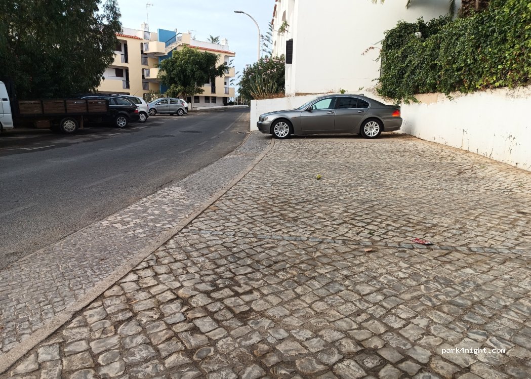 1 / 3Parking des deux côtés de la rue, sans panneaux, parking gratuit pour camping-car ou véhicule résidentiel, place avec circulation des voitures jusqu'à 23h30 et la nuit très calme. Central et proche de la mer d'un côté de la plage d'Albufeira. 13 places garage d'un côté et plusieurs autres de l'autre.