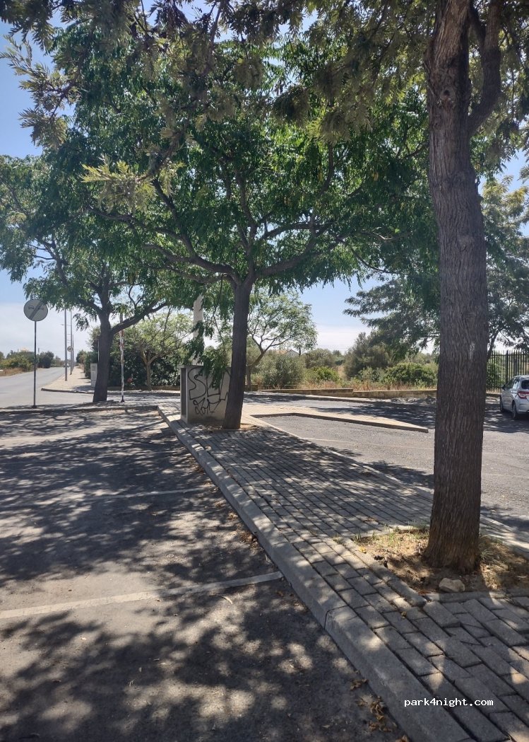 Parkings arborés à la sortie de la petite ville. Quartier calme bien qu'à côté de la route.