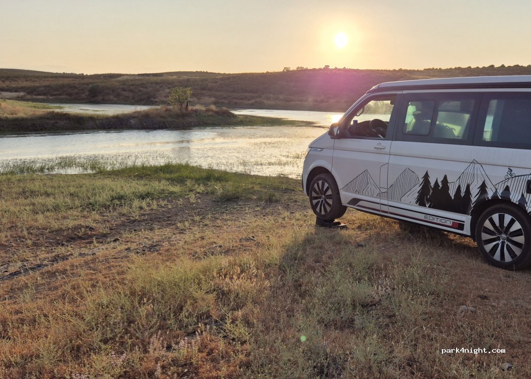Nous venons de trouver cet endroit pour passer la nuit. Sans aucun service, impeccable, juste au bord d'un plan d'eau, un paradis. Ce n'est pas particulièrement plat. Il n'y a pas de moustiques, mais il y en a au crépuscule. Des crapauds, des grenouilles et un immense ciel étoilé sans pollution lumineuse. Parfait pour nous ! Si le temps est sec, n'hésitez pas à descendre au bord de l'eau ; c'est plus plat.