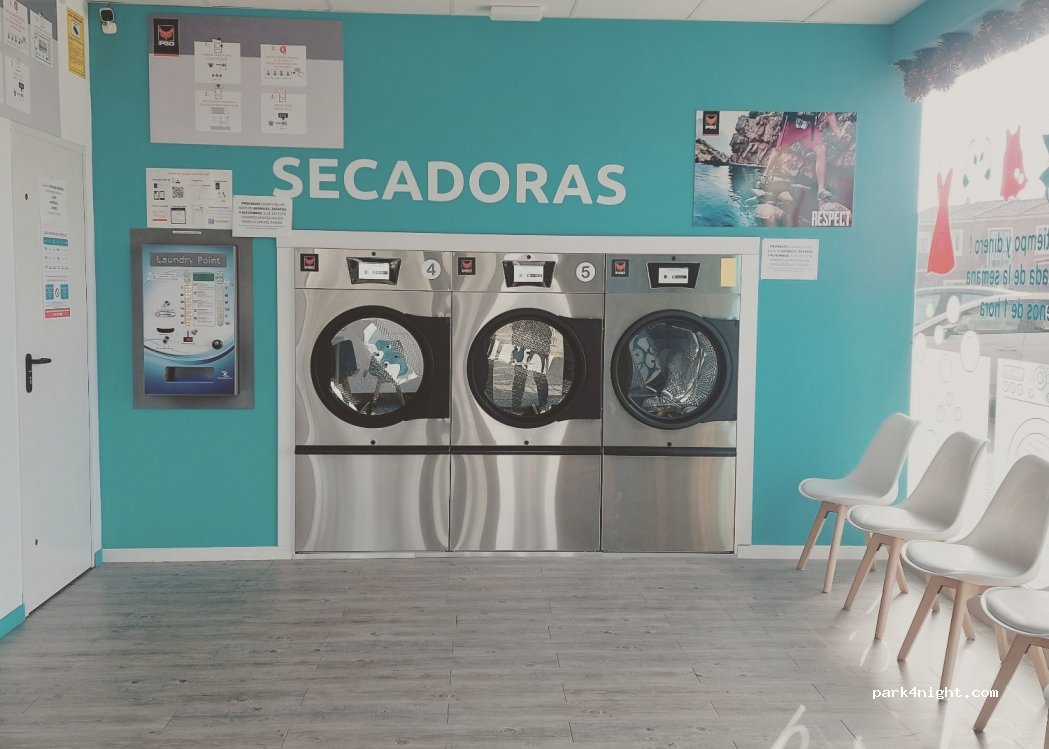 1 / 2Laverie en libre-service. Les machines peuvent être mises en plusieurs langues et il y a plein de places de parking autour, des rues très larges. Paiement en espèces, monnaie et carte via l'application mobile. Parfois, il y a la fille de la laverie qui aide les clients.