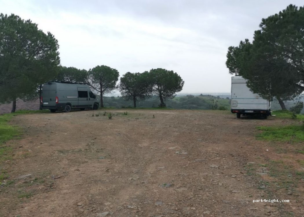 1 / 4Une belle surprise découverte en cherchant un lieu indiqué par l'application. Chemin carrossable pour tout type de véhicule qui débouche sur une large plateforme tournante entourée d'une rangée d'arbre. Très belle vue à 180° avec la mer au loin. Levé de soleil magnifique. Nous étions seul au calme. Terrain plat. pas loin de la route et en même temps pas gêné par le bruit. Seul petit bémol, du vent le matin.