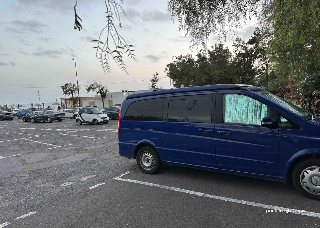 1 / 2Parking spacieux qui est payant, mais coûte maximum 10eur. L'emplacement est vraiment calme pendant la nuit et c'est à côté de la plage. Vous pouvez vous sentir en sécurité car il y a une caméra de vidéosurveillance. Il y a aussi de bons bars où vous pouvez prendre un café ou une boisson.