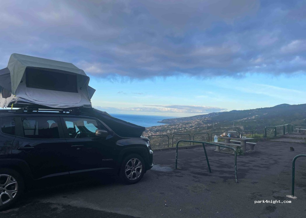 1 / 3Parking avec point de vue sur la pointe et l'aéroport de Funchal. Asphalté et raisonnablement droit. Beaucoup de circulation en journée et bruit des avions au décollage. Il y a des tables, des bancs, un foyer, des toilettes publiques et une vue magnifique.