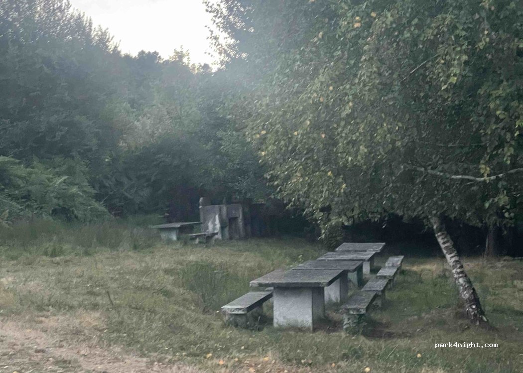 1 / 3Aire de pique-nique avec 5 tables et barbecues, à côté d'une plage fluviale et d'espaces ombragés. Petite, elle peut accueillir quelques petits fourgons.