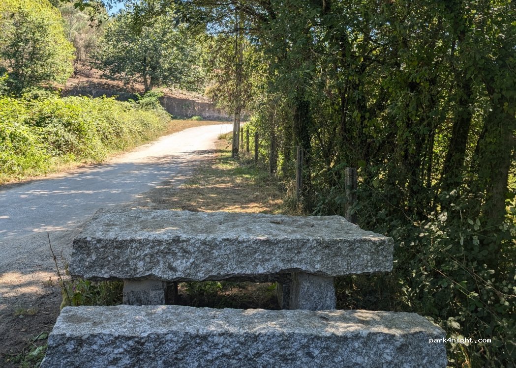 1 / 4Endroit très basique composé de deux tables et chaises en granit. Il y a de la place pour deux voitures ou un camping-car. Idéal pour manger à l'ombre en été, car sur le chemin nous n'avons trouvé aucun autre endroit pour nous arrêter et nous sentir à l'aise.