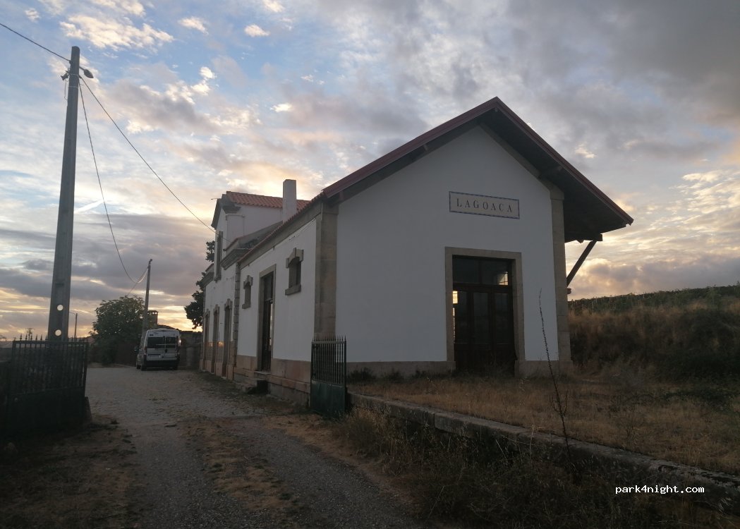 1 / 2Sur la n221, 100m après l'embranchement vers le village de LAGOACA, sur la droite, une petite route vers l'ancienne gare. Nous y avons passé une nuit avant de faire à pieds la ballade (2hrs aller/retour) vers le mirador de cascalinho. Attention, il y a une grille verte ouverte et récente qui laisse le passage derrière l'ancienne gare. Terrain plat et bitumé et bien abrité mais nous pensons que cette grille appartient à une ferme un peu plus loin et que nous risquions de nous retrouver prisonnier si le paysan fermait l'accès (présence d'un cadenas). Donc nous avons stationnés devant la gare.