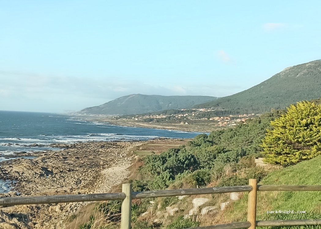 Parking goudronné au bord de la route super point de vue il y'a une poubelle