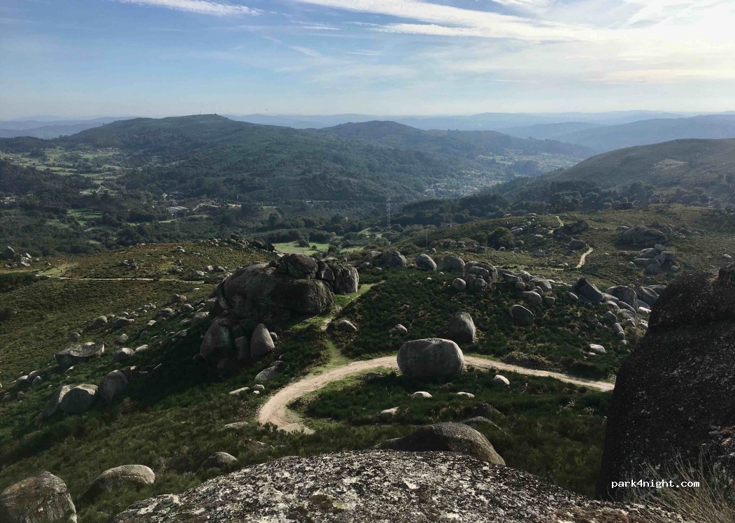 1 / 4Curieuse grande colline monolithique de granit, appelée château de Nóbrega (ruines), à 730 m d'altitude avec un PANORAMA très étendu à 360* (montagne Montemuro observable à 94 km et Marão à 40 km ainsi que la ville de Viana do Castelo à 38 km). Accessible aux 4x4 ou fourgonnettes légères à moteur avant (emplacement plat pour 1 où se termine le chemin asphalté raide ; graviers en avant). Endroit plat en fin de chemin.