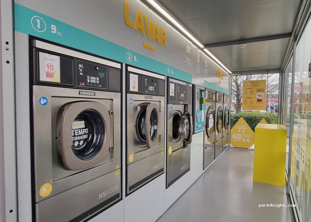 1 / 4Blanchisserie en libre-service à l'extérieur du supermarché « Continente », ils disposent d'une connexion Internet gratuite, d'une salle de bains et d'une boulangerie à l'extérieur du supermarché. Ils vendent également des bouteilles de gaz, mais pas de toutes les tailles. Bonne halte. Pas de limitation de hauteur mais certains endroits ont une limite de 2,20 m en raison des panneaux solaires énergétiques au-dessus de certaines places de parking.