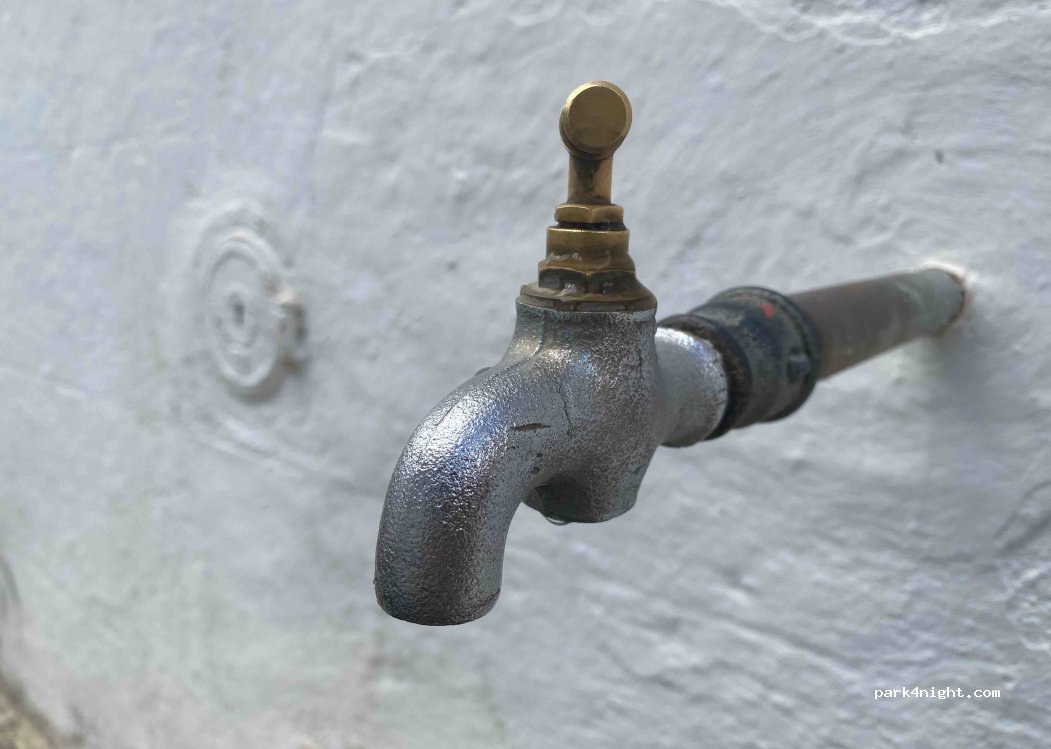 1 / 2Robinets d'eau potable sur le chemin du château de Lousa. Avec un collier de serrage, nous avons pu remplir notre camionnette. Excellent ??