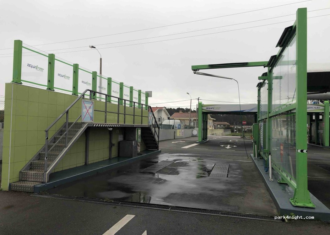 Installation de lavage pour camping-car avec plateforme surélevée pour laver le toit. Très grand et propre.