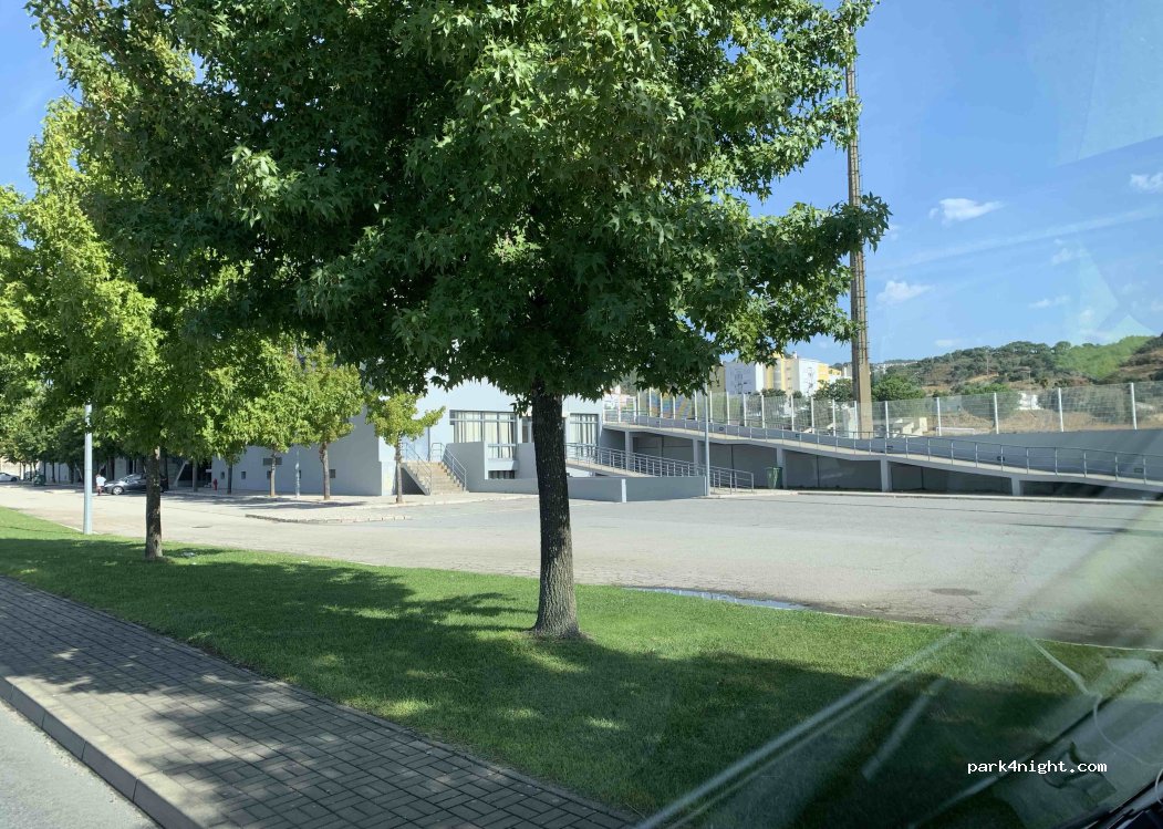 1 / 3Nous avons dormi sur le parking du stade sans problème. Route à côté mais peu de circulation la nuit. Ouvrez les toilettes du stade.